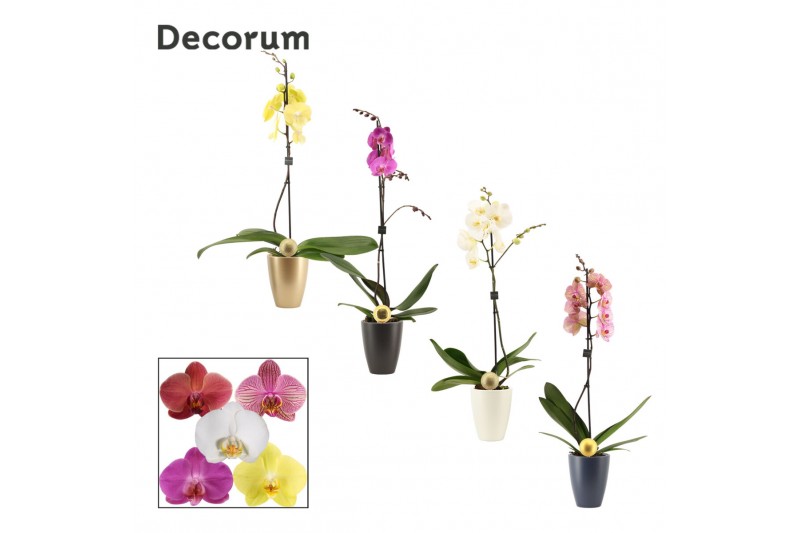 Phalaenopsis mix 1 tak, 9+ bloem - Carly keramiek + kerstbal - Neo Arc