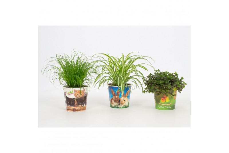 Chlorophytum comosum variegatum in beker pet candy konijn