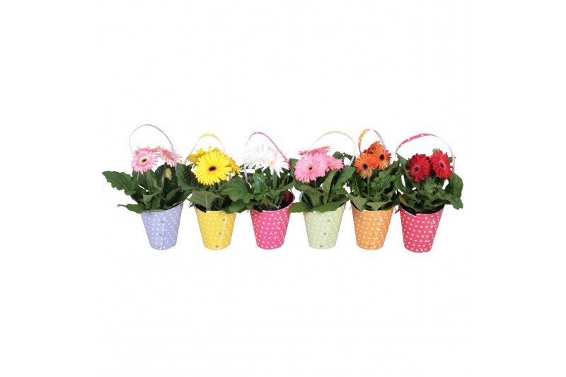 Gerbera mix belicht 2+ in draagtas dots diverse kleuren