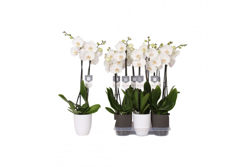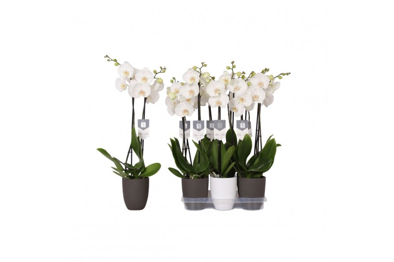 Phalaenopsis white world 2 tak - 14+ bloemen mix keramiek