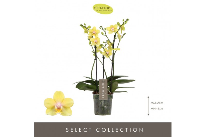 Phalaenopsis multiflora geel Optimost Hera 3 spike35 bl. 3 tak/plnt 50