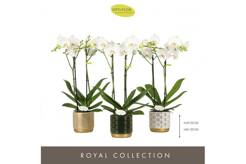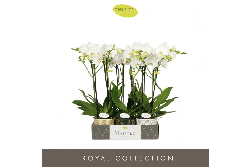 Phalaenopsis wit Maistro Mozart 2 spike 50 cm in Christmas Mix 18 bl.
