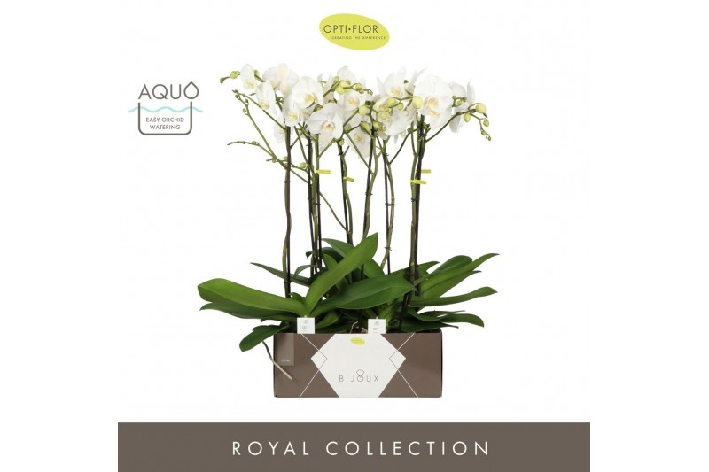 Phalaenopsis wit Bijoux Crystal 2 spike in Emilia Dark Brown Aquo 14 b