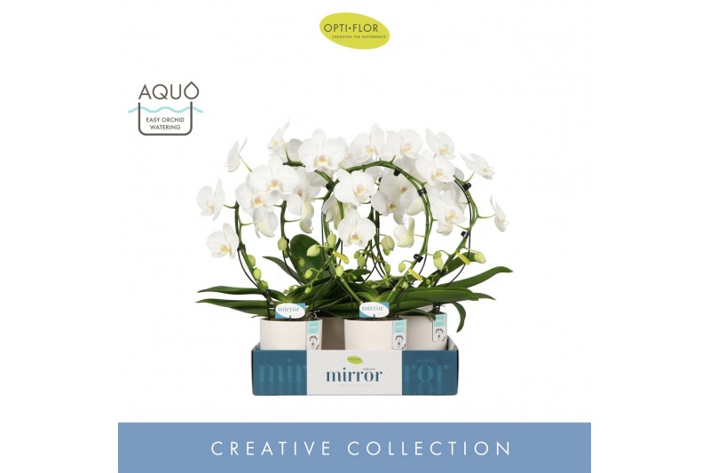 Phalaenopsis wit Mirror Miracle Aurora 2 spike in Emilia White Aquo 15