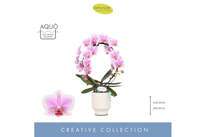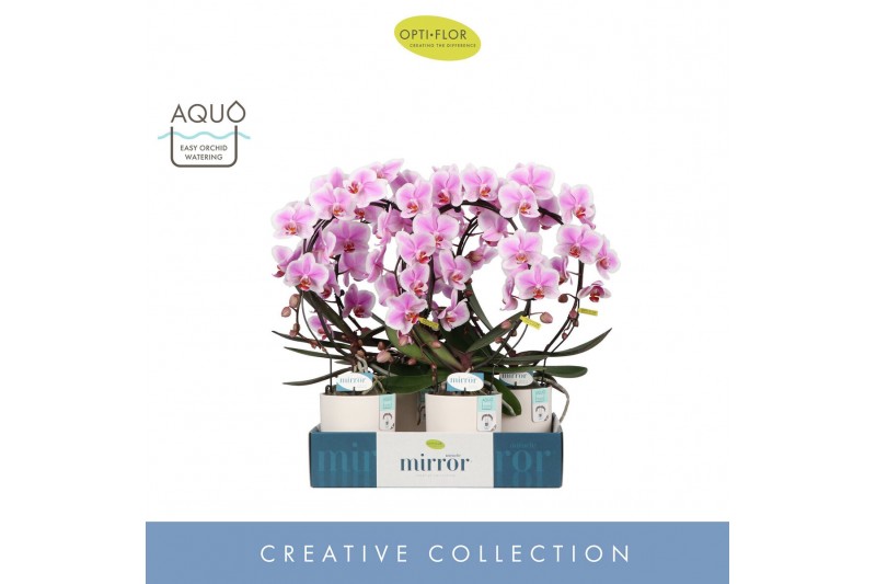 Phalaenopsis Mirror Miracle Jasmine 2 spike in Emilia White Aquo 15 bl
