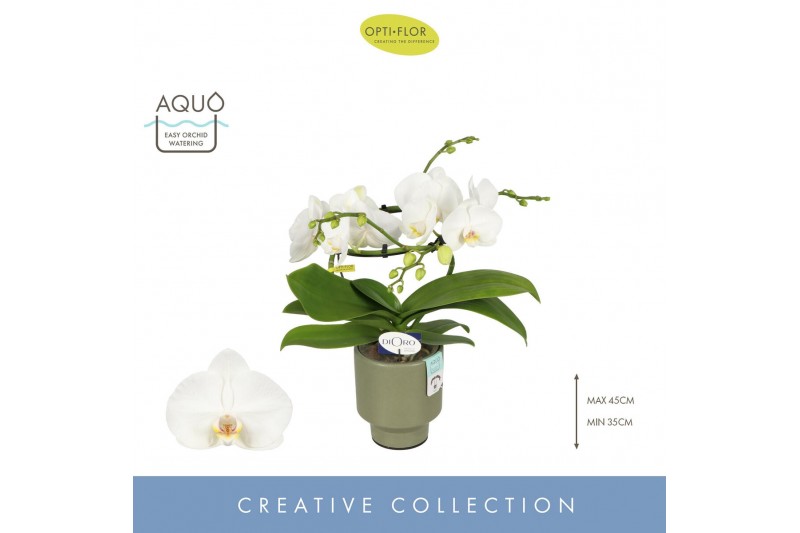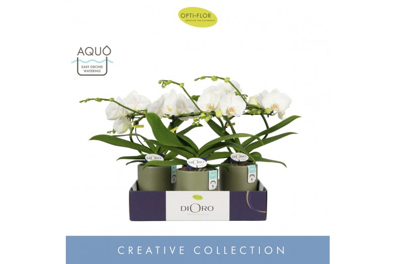 Phalaenopsis wit Dioro Prestige 2 spike in Emilia Green Aquo 16 bl. 2