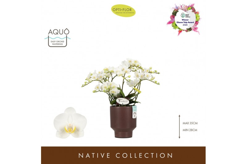 Phalaenopsis multiflora wit Freedanzo Dove in Emilia Brown Aquo 35 bl.