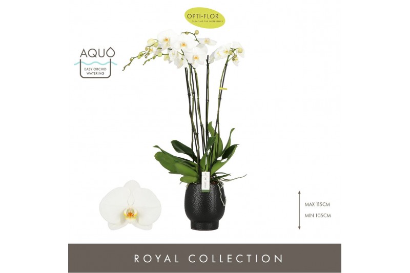 Phalaenopsis wit Fortuno Alto 5 spike in Abruzzo Black Aquo30 bl. 5 ta