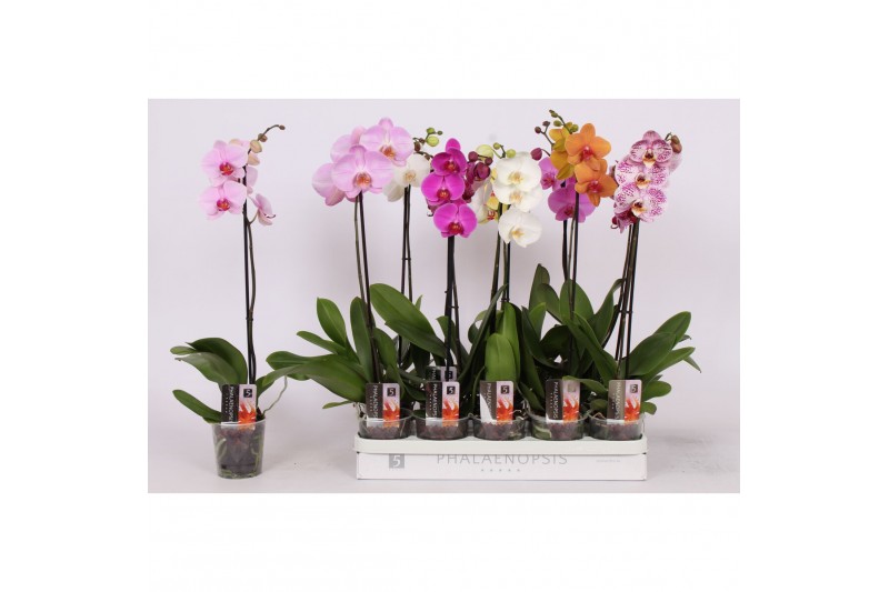Phalaenopsis mix Phalaenopsis 5 color mix, 1-spike 6+6 bl. 1 tak/plnt