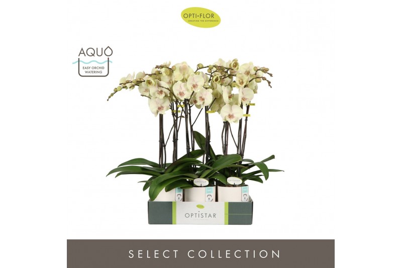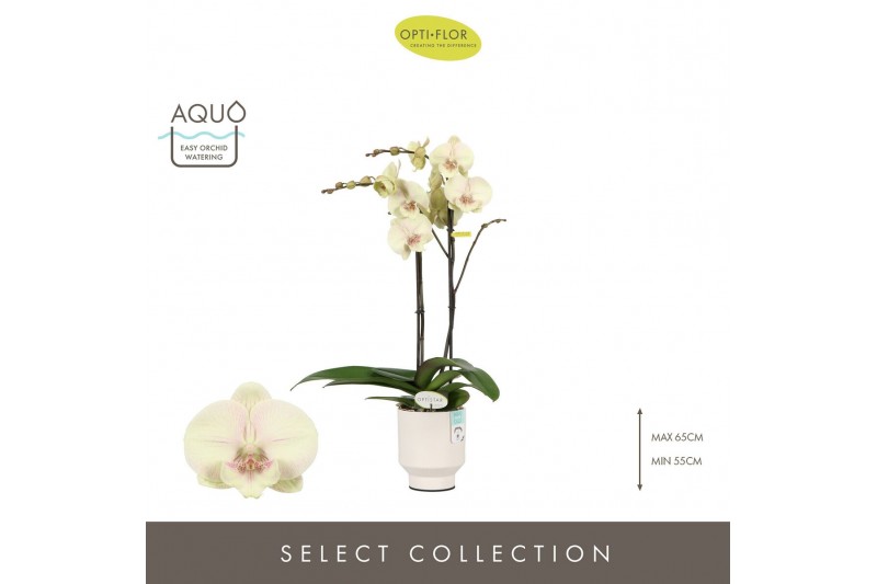 Phalaenopsis geel Optistar Turner 2 spike in Emilia White Aquo 15 bl.