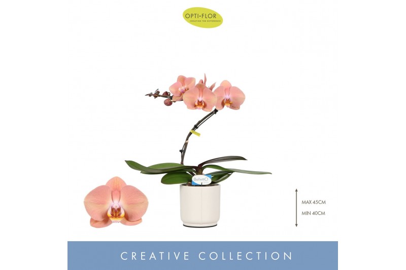 Phalaenopsis zalm Balletto Sway 1 spike in Lazio White 9 bl. 1 tak/pln
