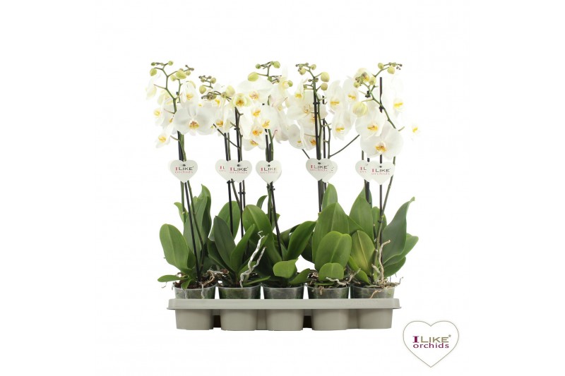 Phalaenopsis wit Phalaenopsis wit-gele lip - 1 tak 70cm 9+/vertakt 12