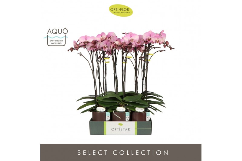 Phalaenopsis roze Optistar Madonna 2 spike in Emilia Brown Aquo 15 bl.