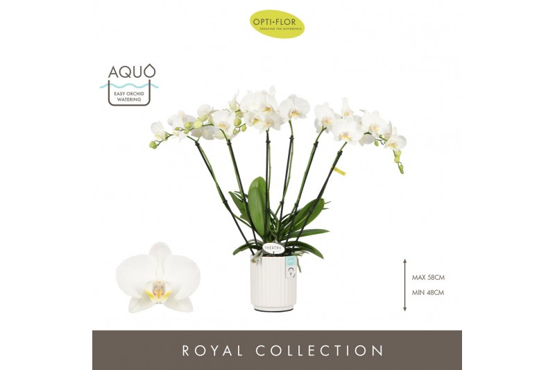 Phalaenopsis wit Theatro Jazz 6 spike in Molise White Aquo 45 bl. 6 ta