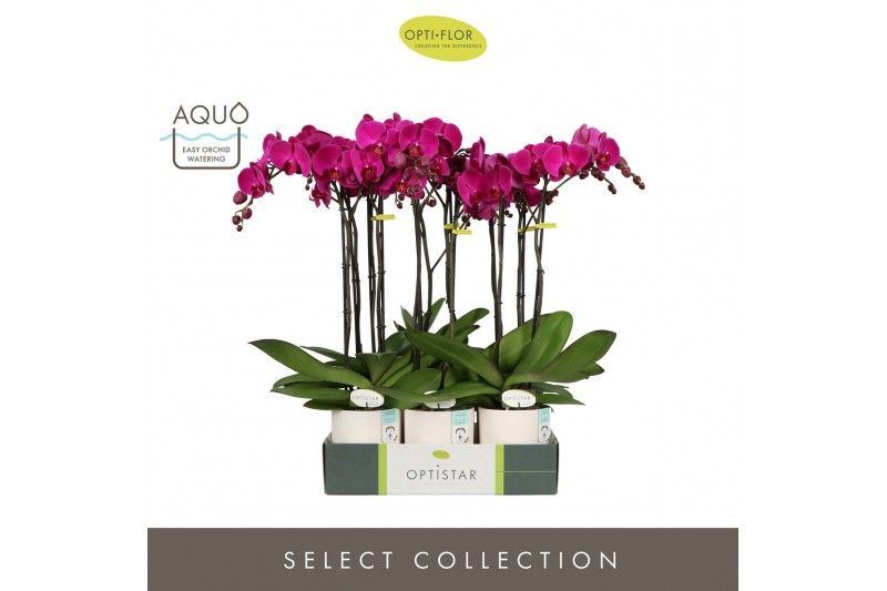Phalaenopsis paars Optistar Lopez 2 spike in Emilia White Aquo 15 bl.