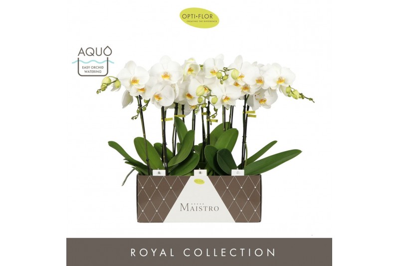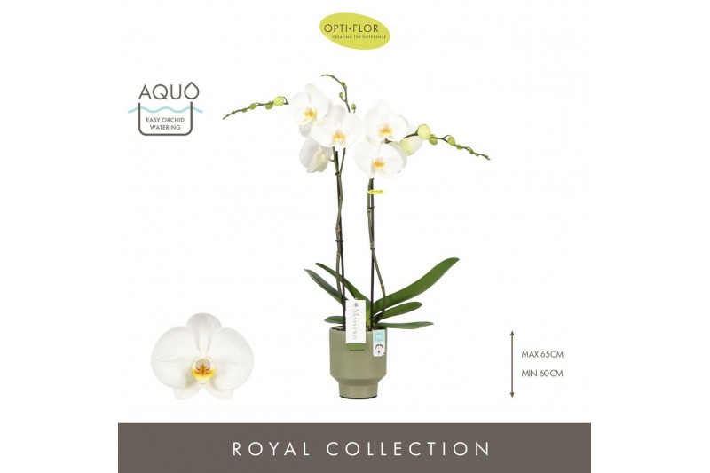 Phalaenopsis wit Maistro Verdi 2 spike 60 cm in Emilia Green Aquo 18 b