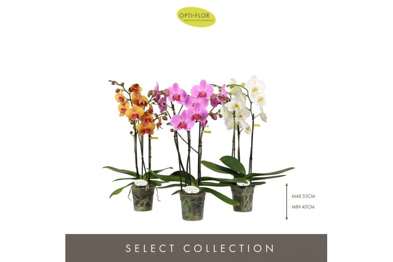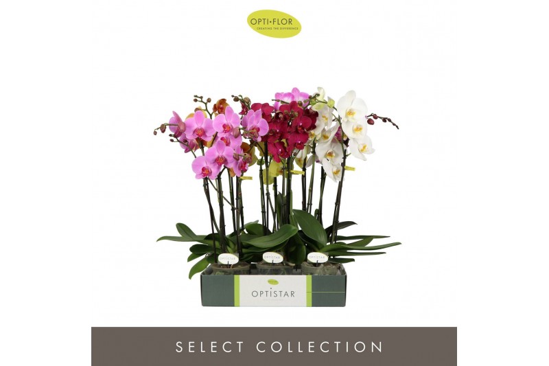 Phalaenopsis mix Optistar Hollywood Mix 3 spike 50 cm 18 bl. 3 tak/pln