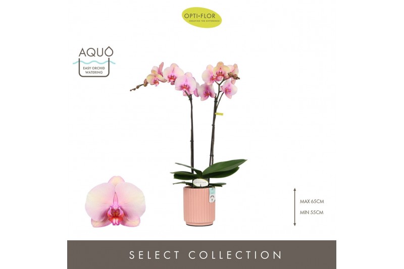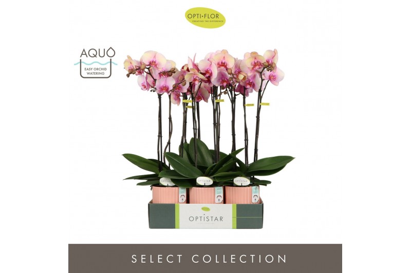 Phalaenopsis roze Optistar Adele 2 spike in Molise Salmon Aquo 15 bl.