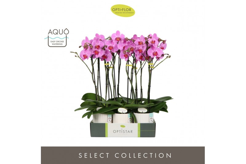 Phalaenopsis roze Optistar Yoko 2 spike in Molise White Aquo 15 bl. 2