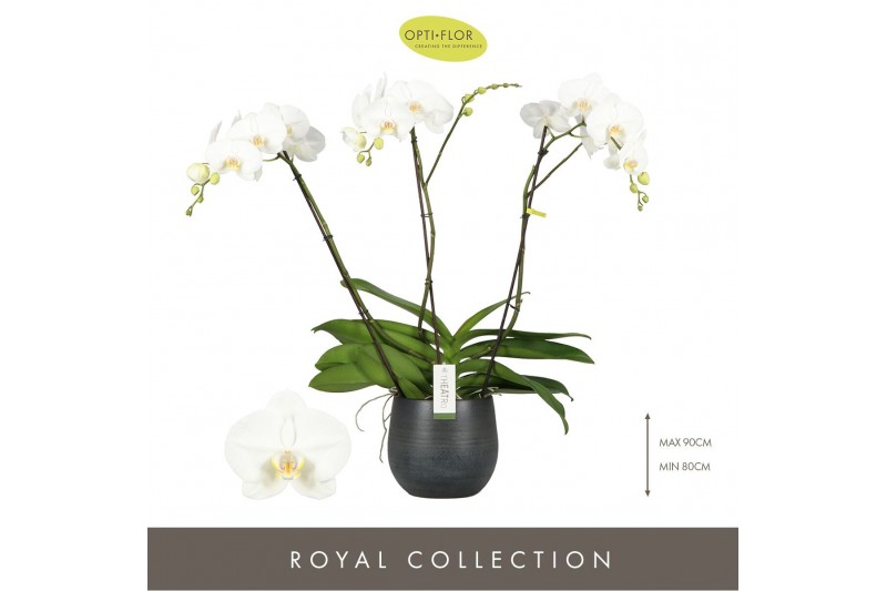 Phalaenopsis wit Theatro Classico 3 spike in Esra Graphite 24 bl. 3 ta