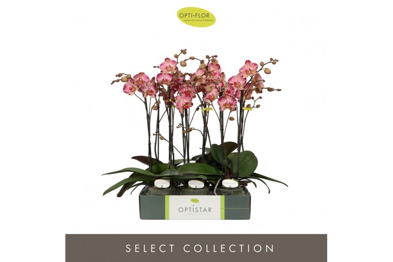 Phalaenopsis rood Optistar Gaga 2 spike15 bl. 2 tak/plnt