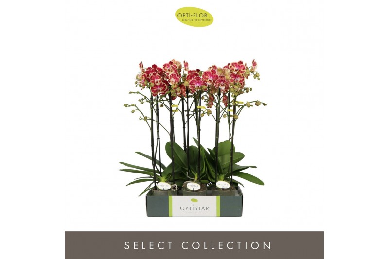 Phalaenopsis rood Optistar Spears 2 spike15 bl. 2 tak/plnt