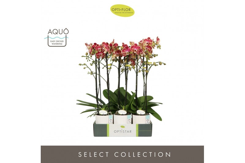 Phalaenopsis rood Optistar Spears 2 spike in Molise White Aquo 15 bl.
