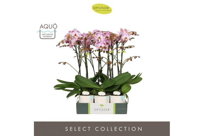 Phalaenopsis Optistar Sorano 2 spike in Emilia White Aquo 15 bl. 2 tak