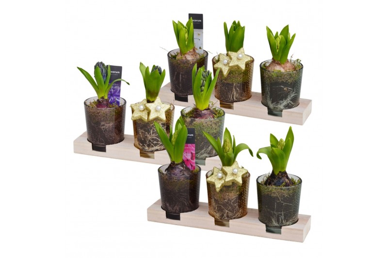 Arrangementen hyacinthus Hyacint Triple Glass on Wood HL13722 [LOVELY