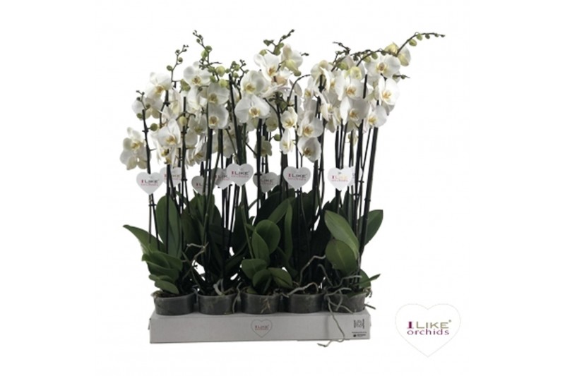 Phalaenopsis wit Phalaenopsis wit-gele lip - 3 tak 80cm 22 bl. 3 tak/p