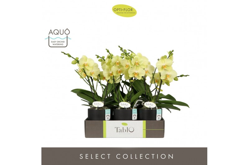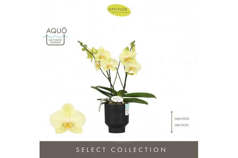 Phalaenopsis geel Tablo Limoncello 2 spike in Emilia Brown Aquo 25 bl.