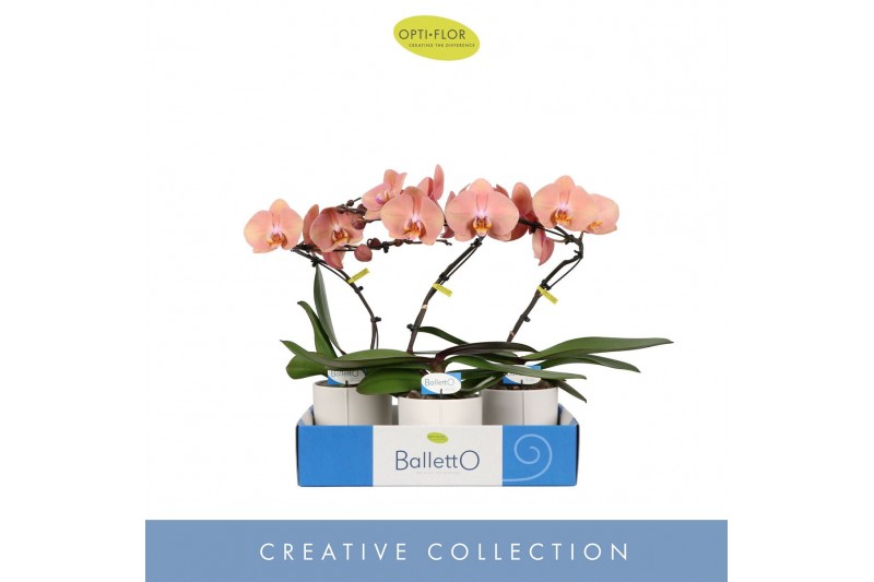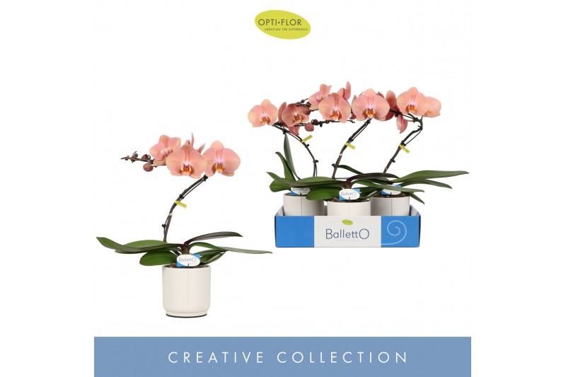 Phalaenopsis zalm Balletto Sway 1 spike in Lazio White 9 bl. 1 tak/pln