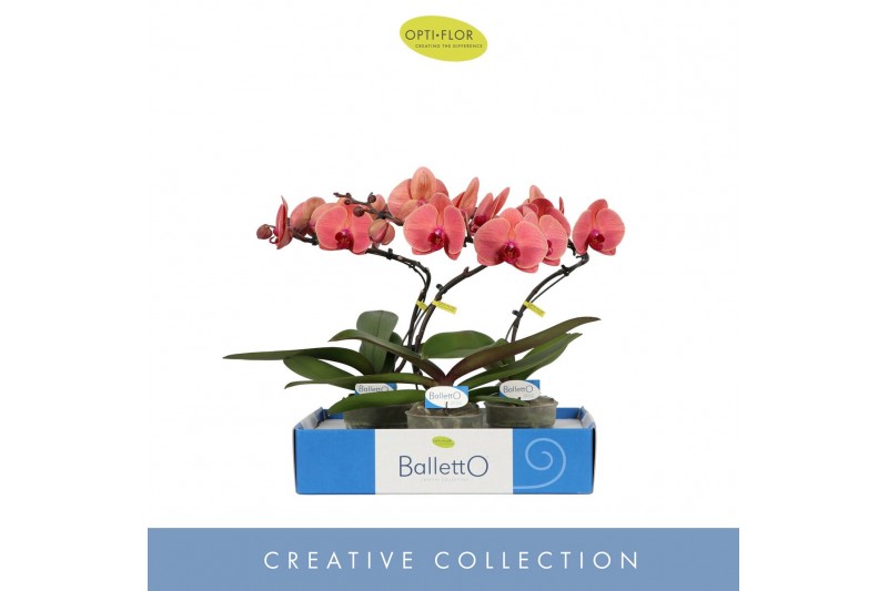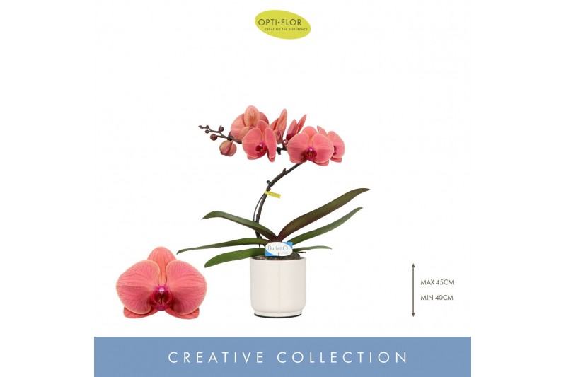 Phalaenopsis oranje Balletto Swirl 1 spike in Lazio White 9 bl. 1 tak/