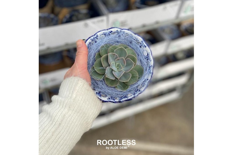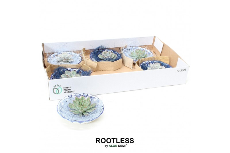 Arrangementen succulenten ROOTLESS Echeveria, Dutch Delft Blue bowl1 p