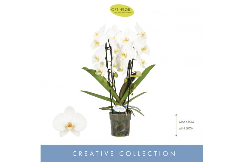 Phalaenopsis wit Fontano Versailles 2 spike 15 bl. 2 tak/plnt