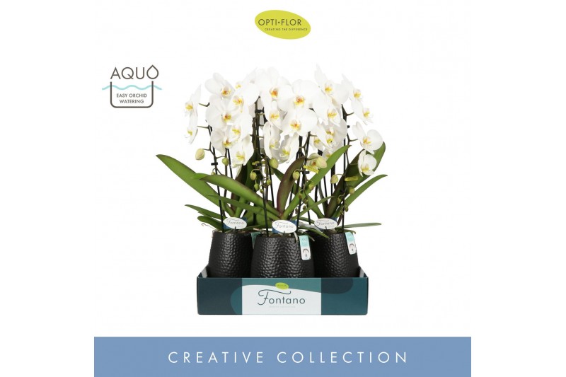 Phalaenopsis wit Fontano Versailles 2 spike in Abruzzo Black Aquo 15 b