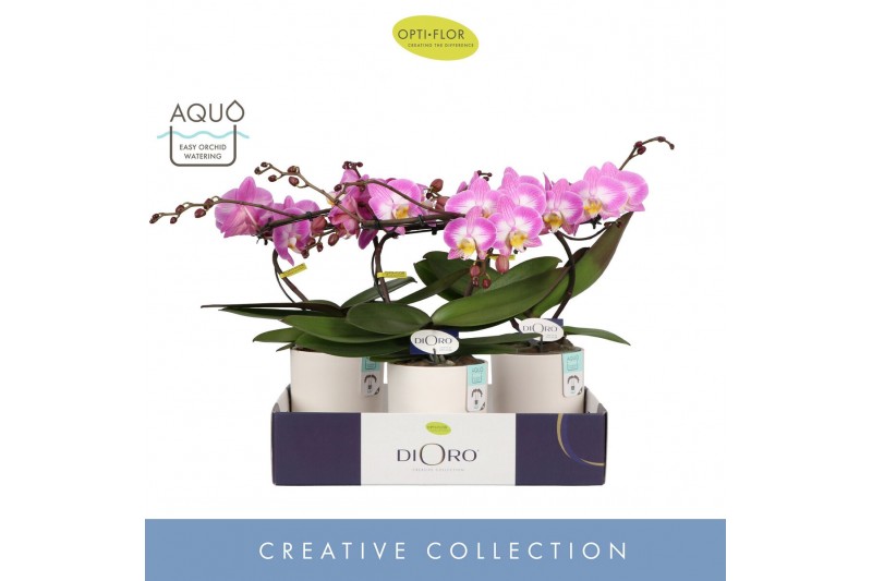 Phalaenopsis roze Dioro Allure 2 spike in Emilia White Aquo 16 bl. 2 t