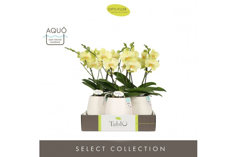 Phalaenopsis geel Tablo Limoncello 2 spike in Abruzzo White Aquo 25 bl