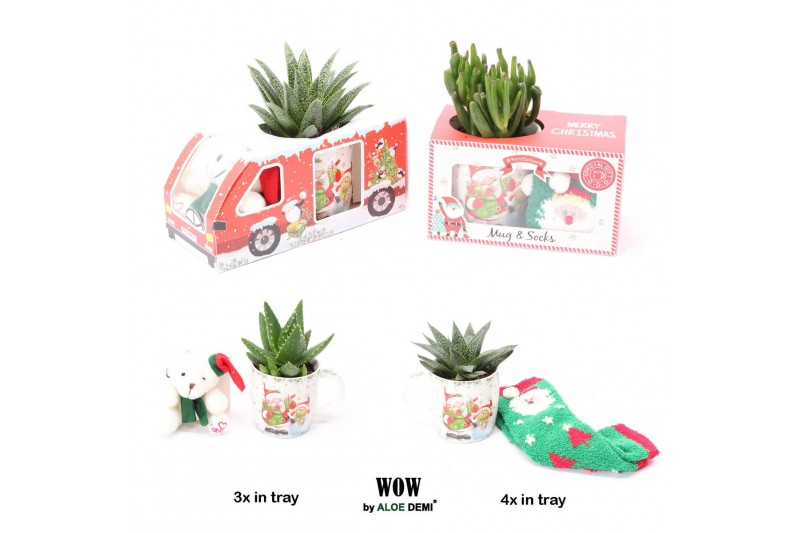 Arrangementen succulenten WOW Succulent, X-Mas mug and bear + mug and