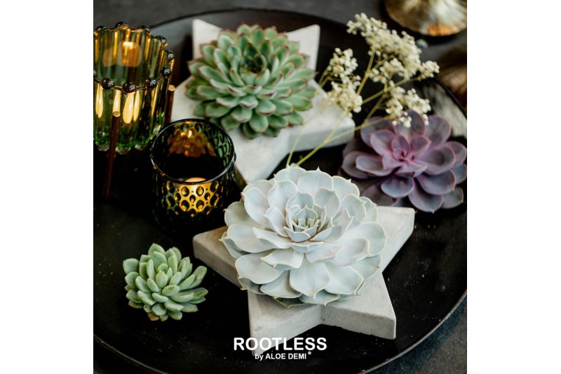 Arrangementen succulenten ROOTLESS Echeveria, Grey star - black box1 p