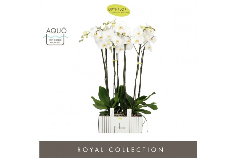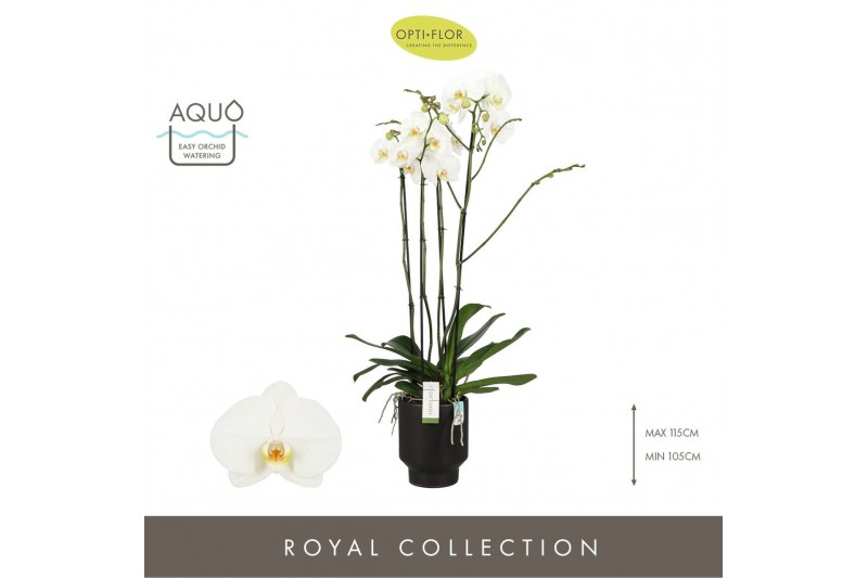 Phalaenopsis wit Fortuno Alto 4 spike in Emilia Dark Brown Aquo 24 bl.