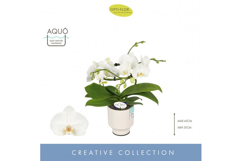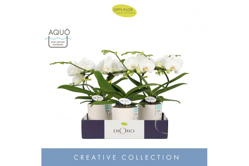 Phalaenopsis wit Dioro Prestige 2 spike in Emilia White Aquo 16 bl. 2