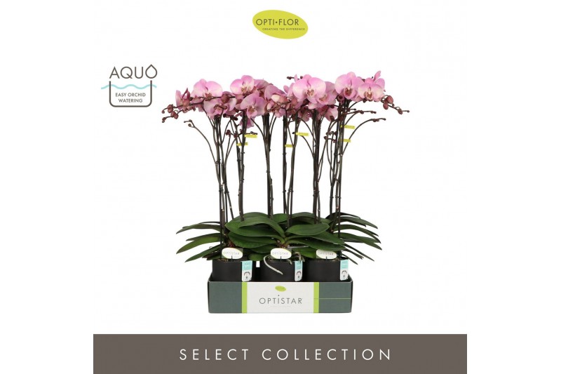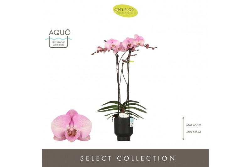 Phalaenopsis roze Optistar Madonna 2 spike in Emilia Brown Aquo 15 bl.