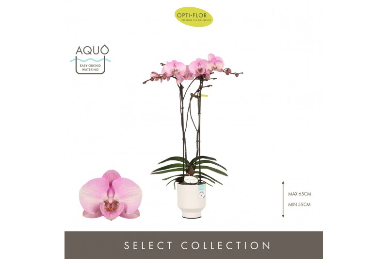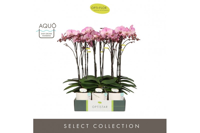 Phalaenopsis roze Optistar Madonna 2 spike in Emilia White Aquo 15 bl.