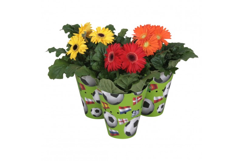 Gerbera mix decorum 2+ bl in beker voetbal en vlag