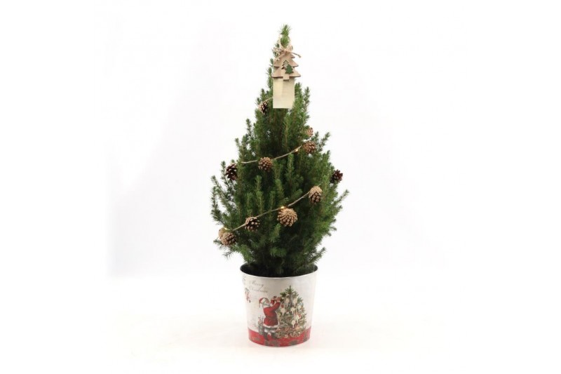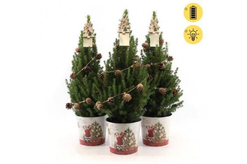 Picea glauca december P19 in Zinc Santa + Pine-Cone Light + Tree on Lo