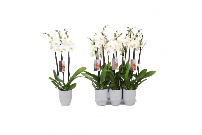 Phalaenopsis anthura madrid 3 tak - 22+ bloemen grijs keramiek