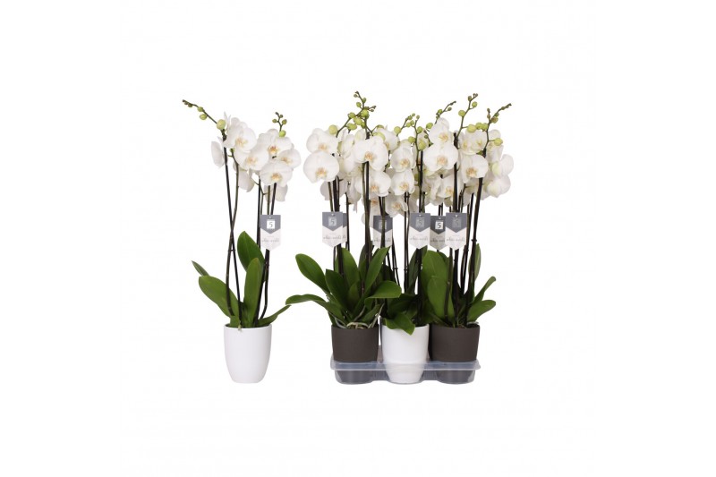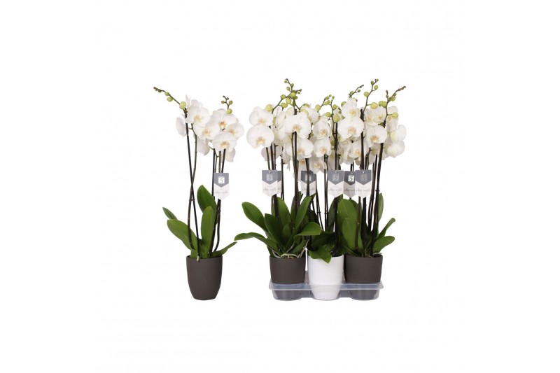 Phalaenopsis white world 3 tak - 18+ bloemen mix keramiek