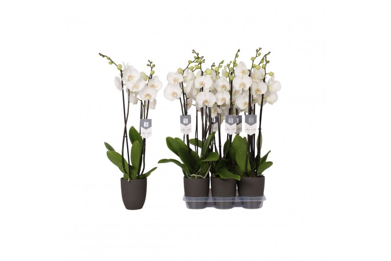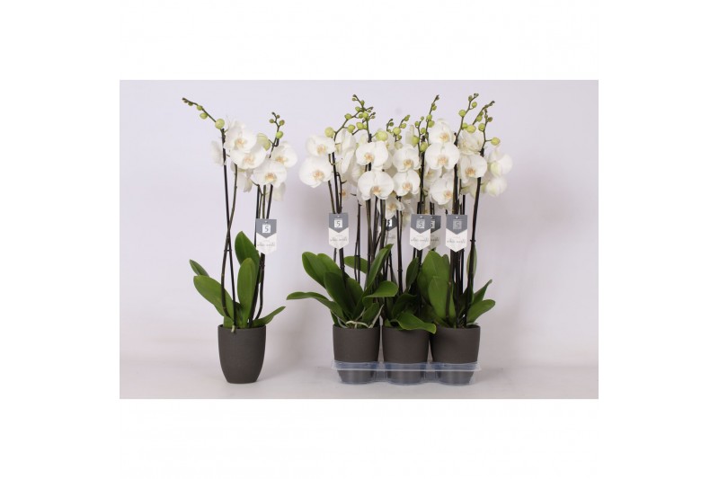 Phalaenopsis white world 3 tak - 18+ bloemen antraciet keramiek