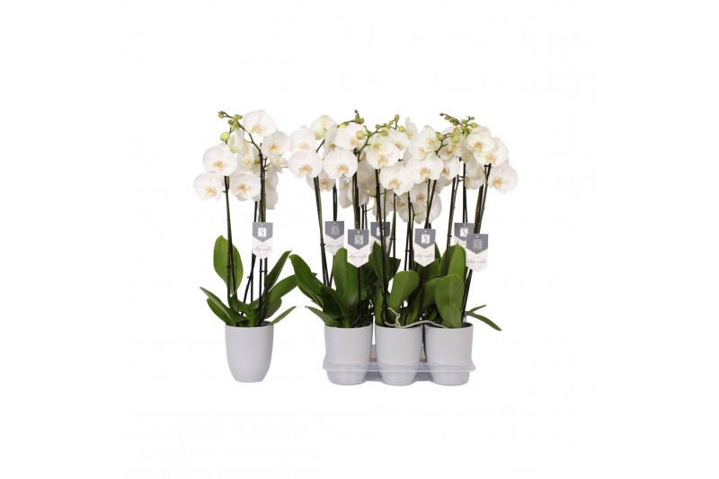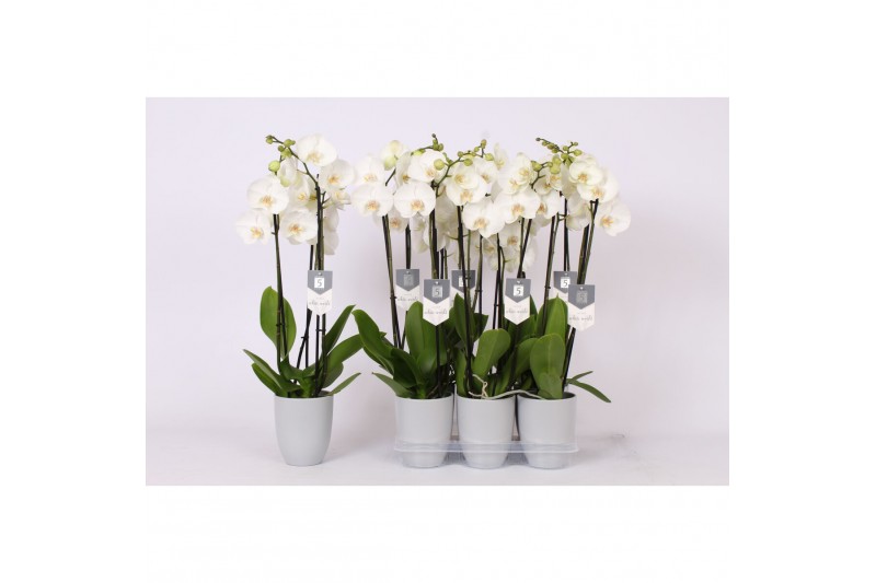 Phalaenopsis white world 3 tak - 18+ bloemen grijs keramiek